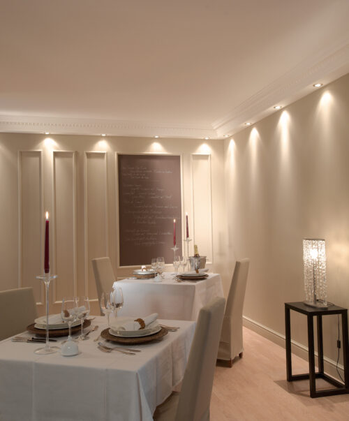 Mit direkter und indirekter Beleuchtung kombinierbare Decken-, Wand- und Sockelleisten sowie Wanddekorationselemente. Schaffen Sie eine gemütliche Atmosphäre und verschönern Sie ihre Wände.